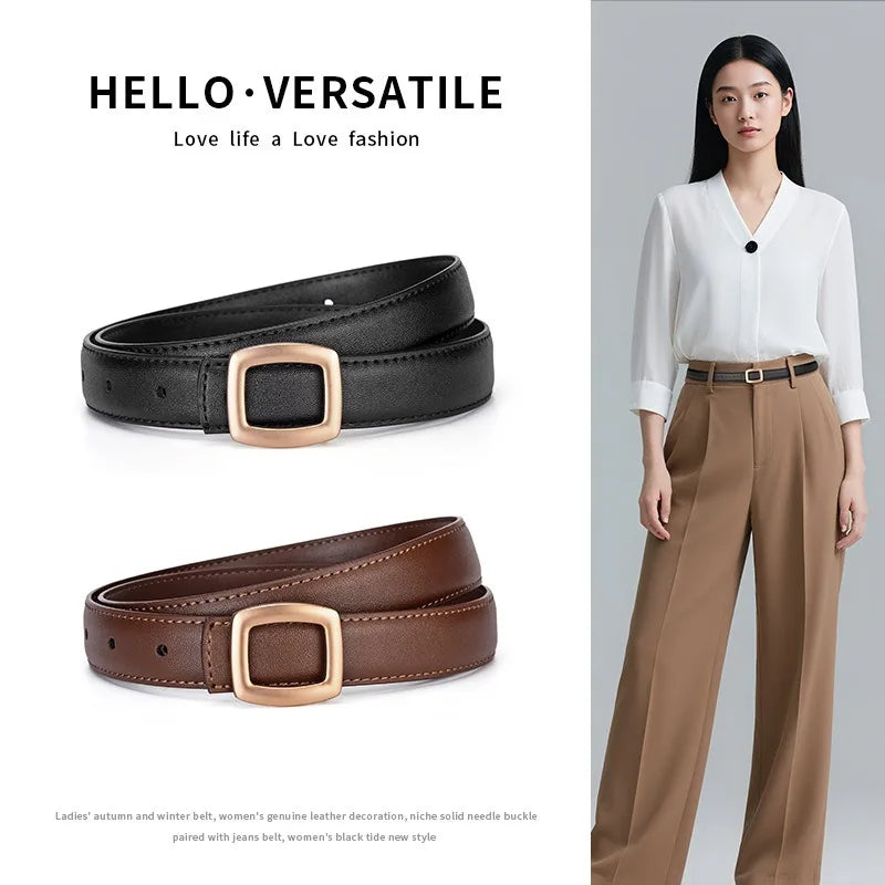 Belts for Women Genuine Leather Luxury Designer Jeans Belt Female Waistband Fashion Square Metal Buckle Belt Lady Black