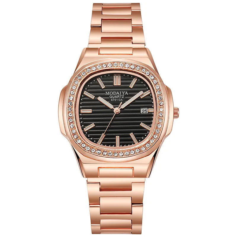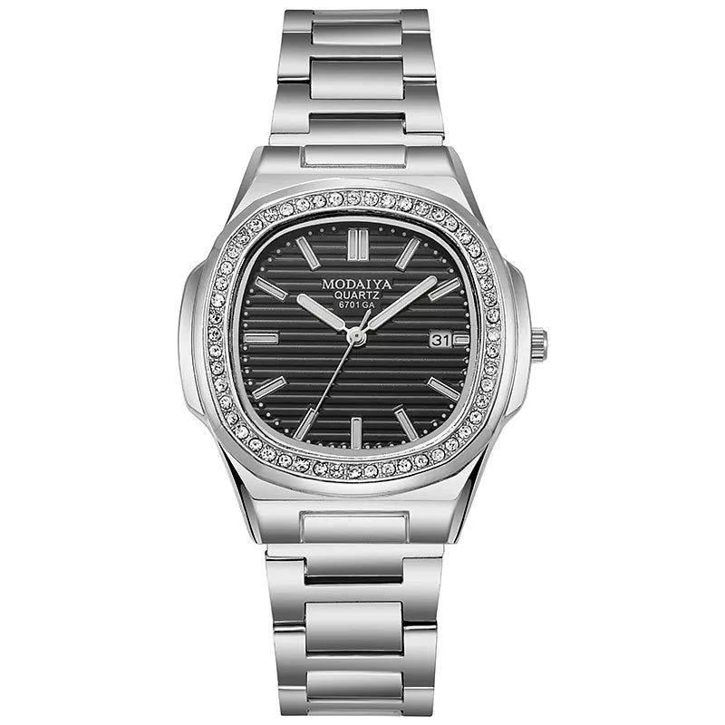 2022 New Fashion Square Luxury Diamond Quartz Business Men's Watch Alloy Steel Band Simple Scale Watch