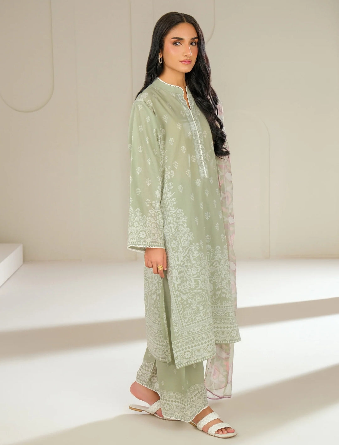 3 Pieces Cambric Suit Printed unstitched (Lime light)
