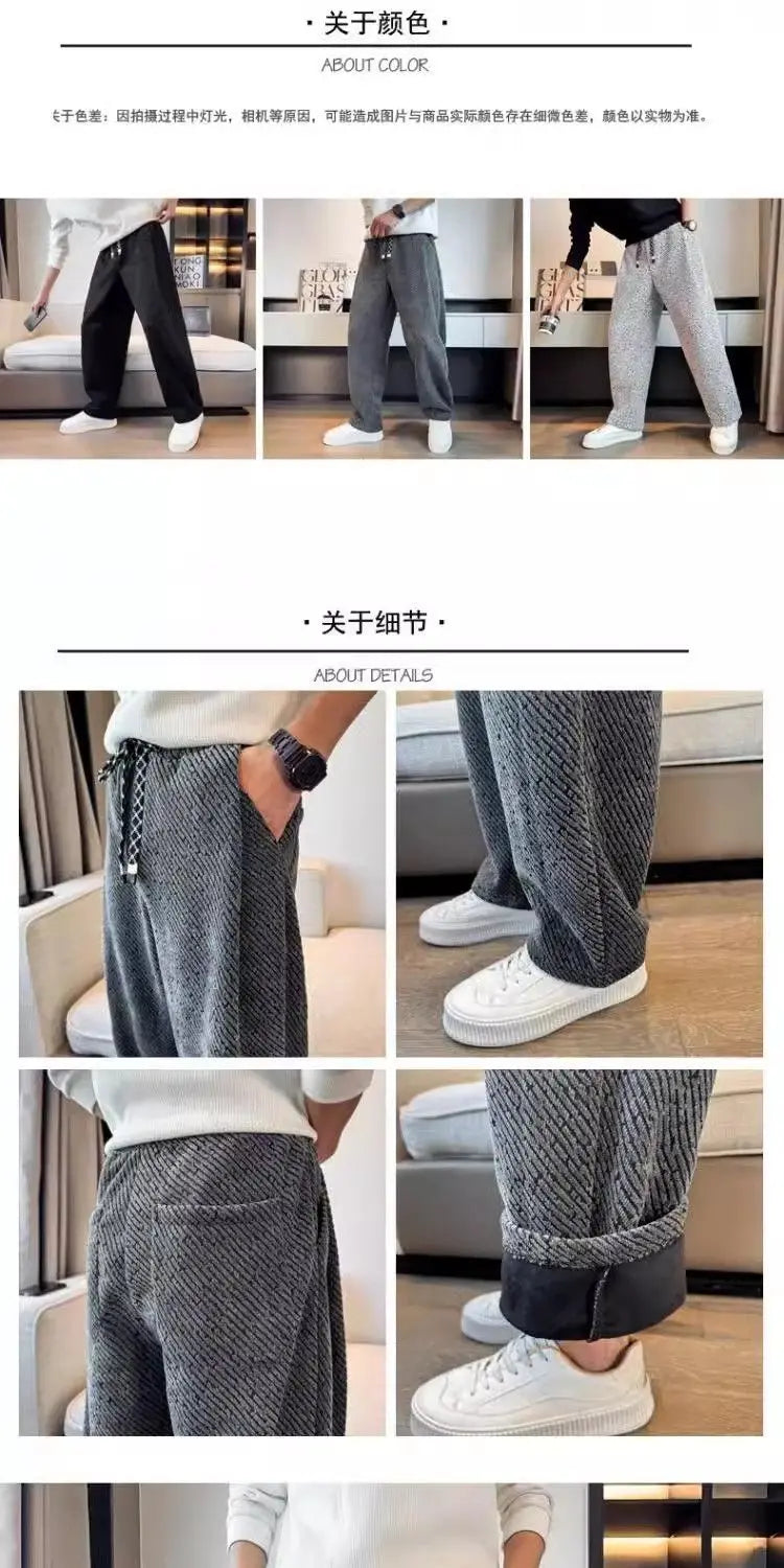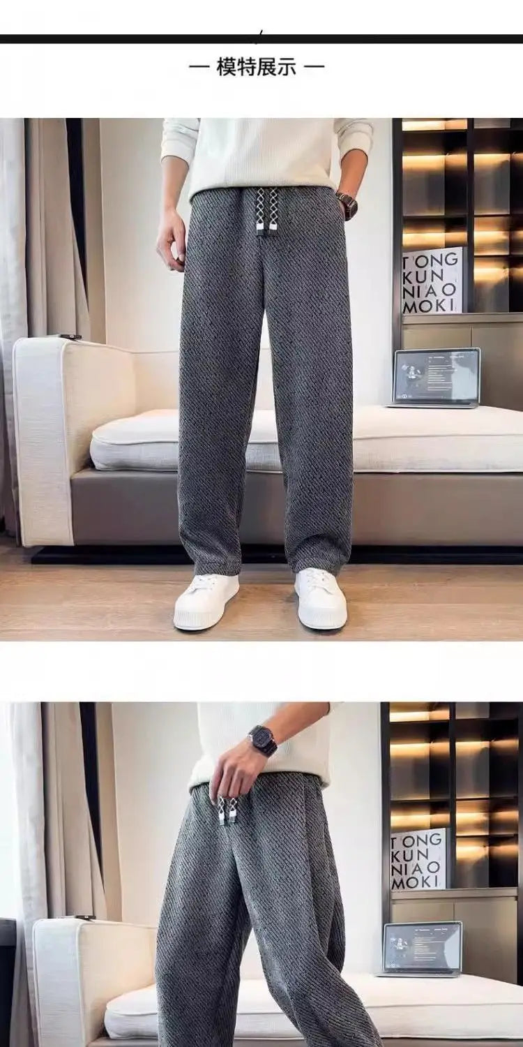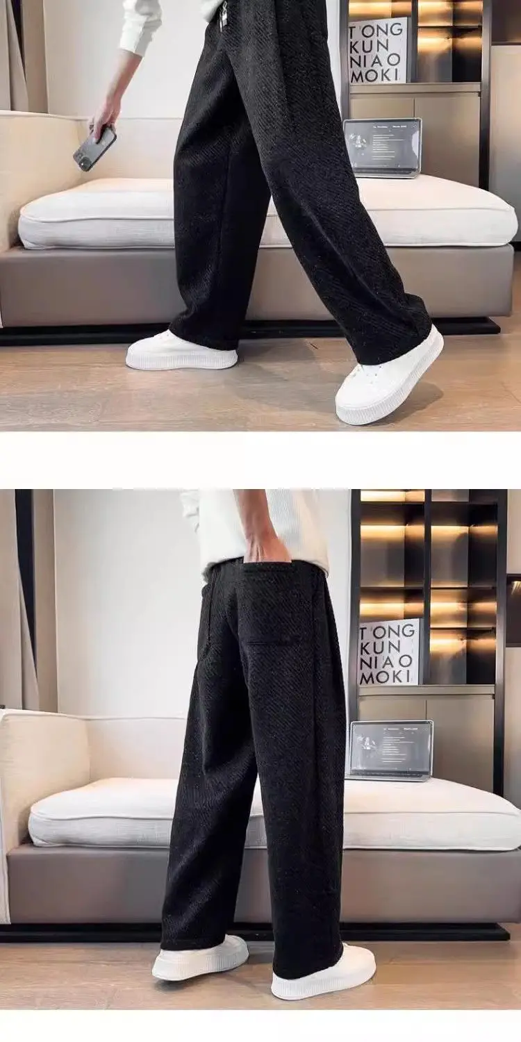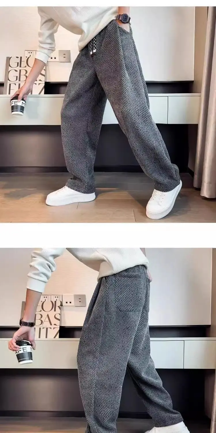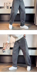 Autumn Winter Loose Men's Sherpa Fabric Straight Pants Man Fashion Thick Pockets Trousers Solid Color Male Clothes