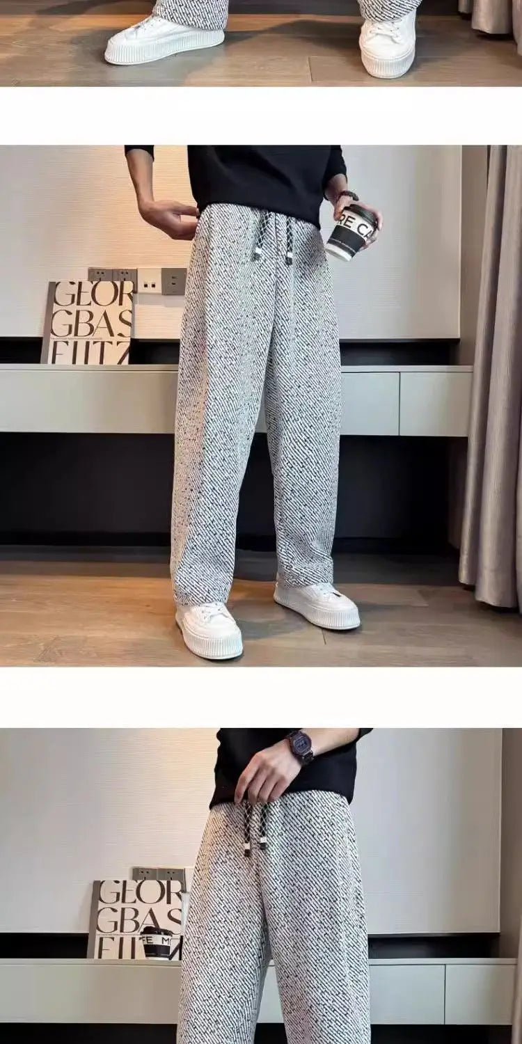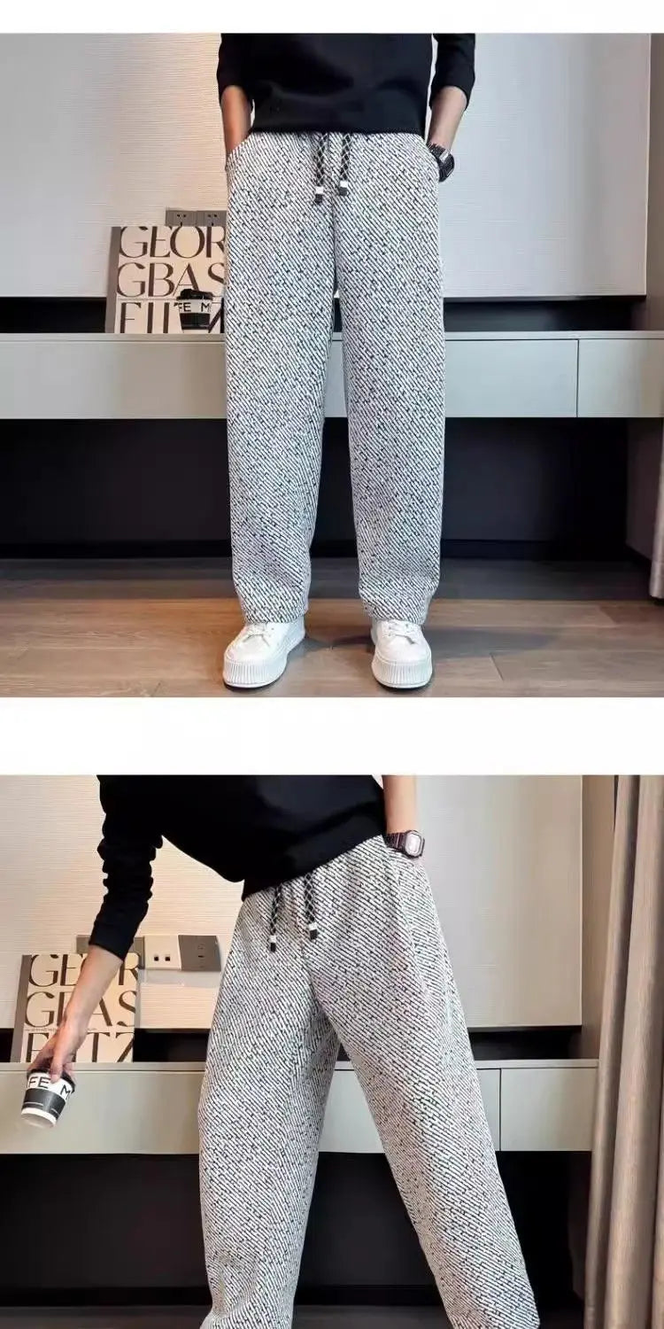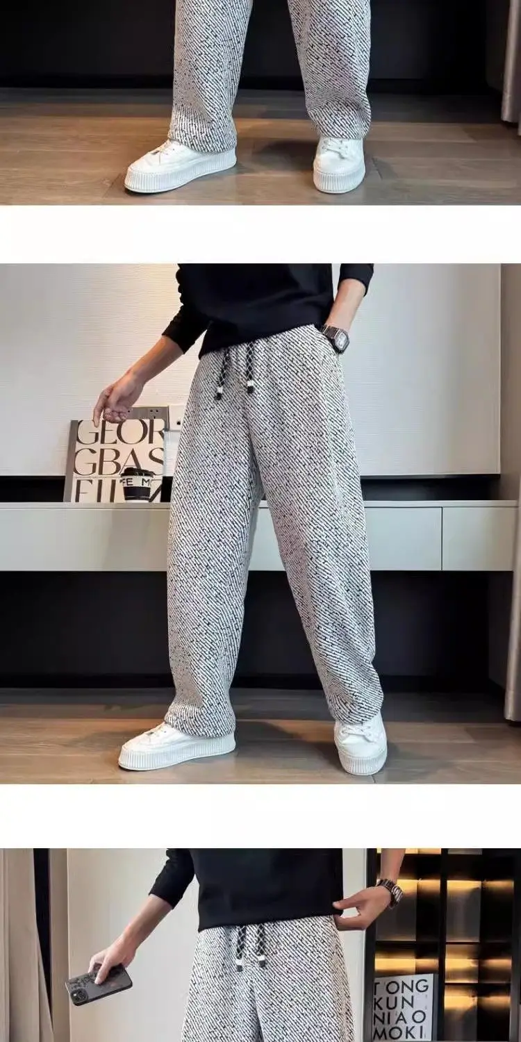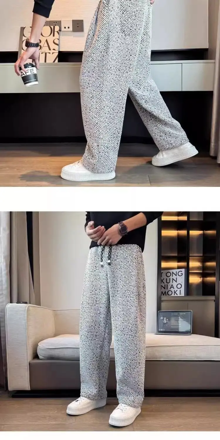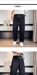 Autumn Winter Loose Men's Sherpa Fabric Straight Pants Man Fashion Thick Pockets Trousers Solid Color Male Clothes