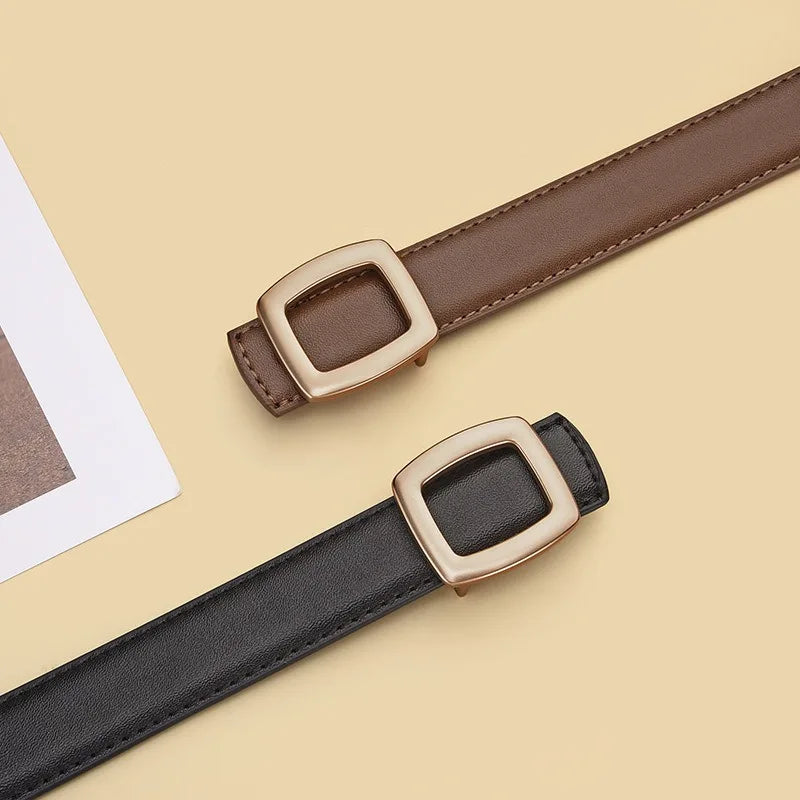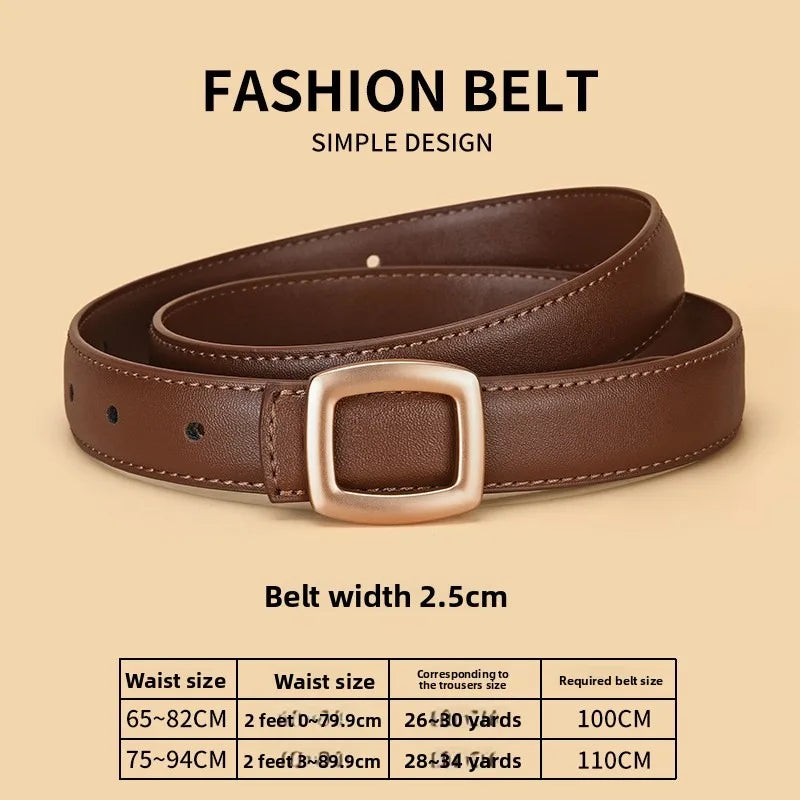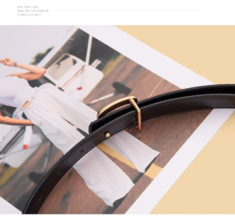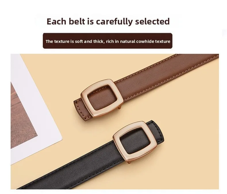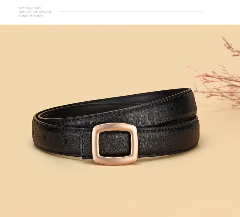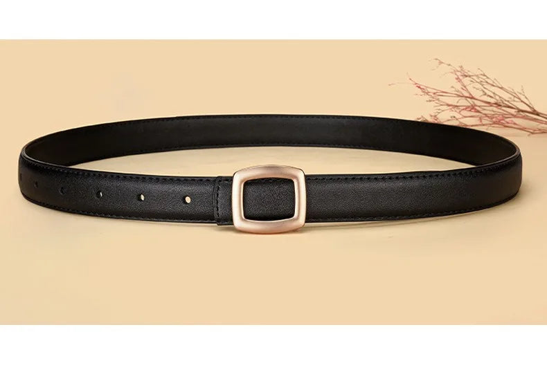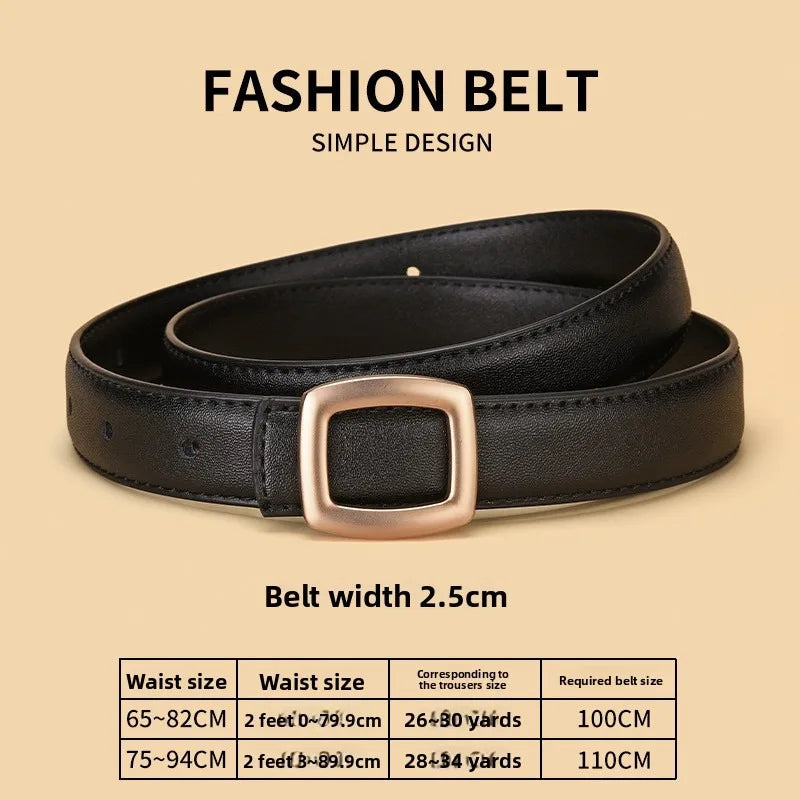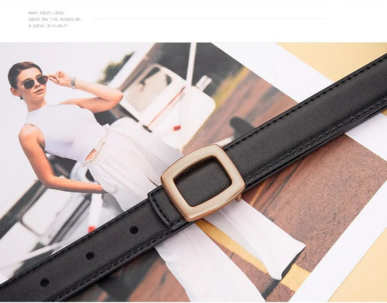 Belts for Women Genuine Leather Luxury Designer Jeans Belt Female Waistband Fashion Square Metal Buckle Belt Lady Black