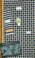 This 3-piece set features a white Khaddar shirt, printed patterns on the shirt front, sleeves, and back, a Khaddar trouser with a printed pattern, and a Khaddar dupatta with a printed pattern. Each piece is cut at 3.0 meters for the shirt, 2.5 meters for the trouser, and 2.5 meters for the dupatta. The package includes one of each piece. Please note that there may be a 1-3 cm measurement error and slight color variations due to manual measurement and lighting effects. Product Code: MZ32200000459BSAE.