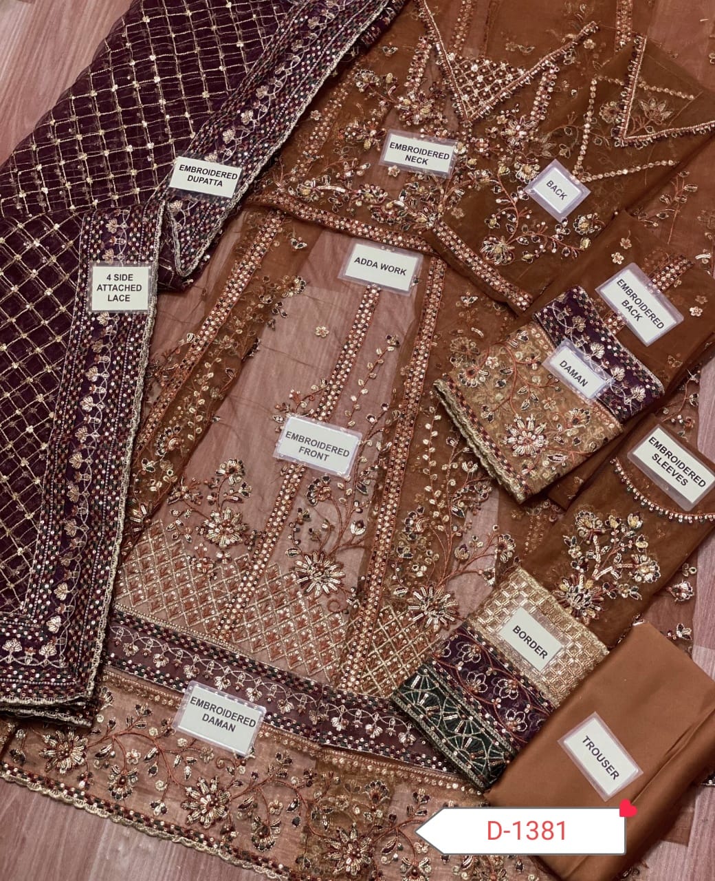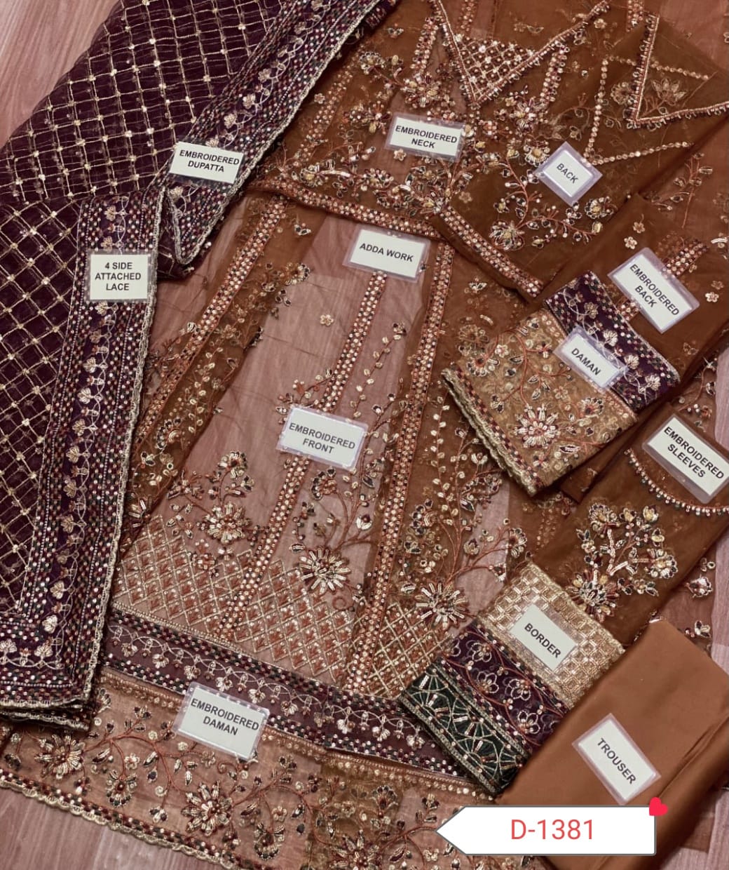*Back* fully embroidery having Thread & Sequence work on it Heavy Embroidered Border {as original pattern}