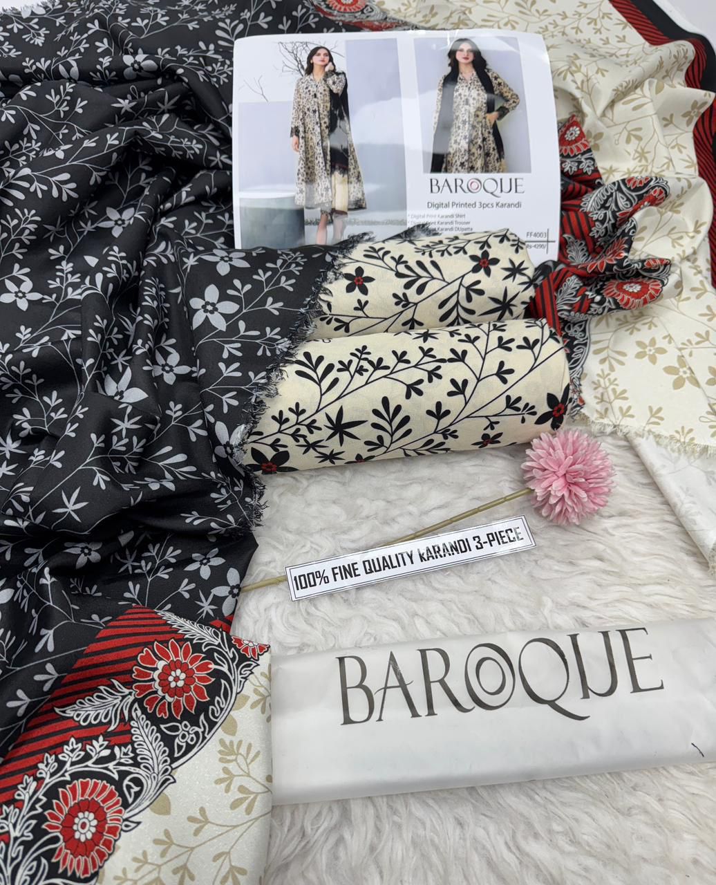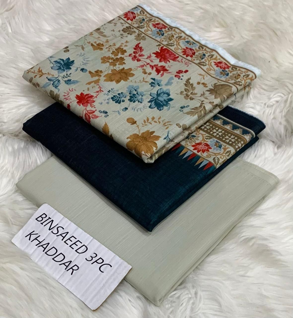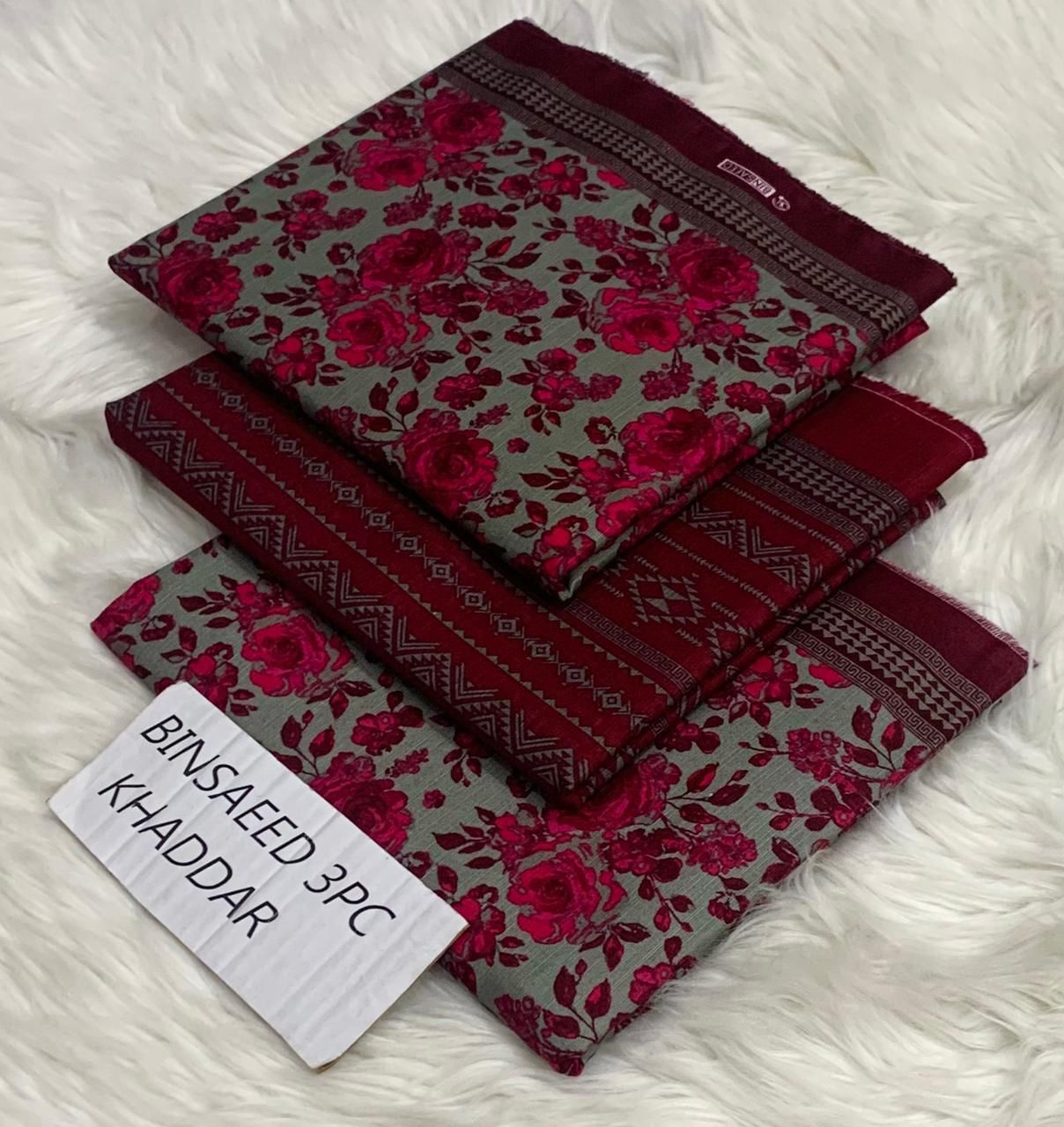 Ladies winter collection printed Karandi (Dupatta, shirt, trouser, 3Pcs)