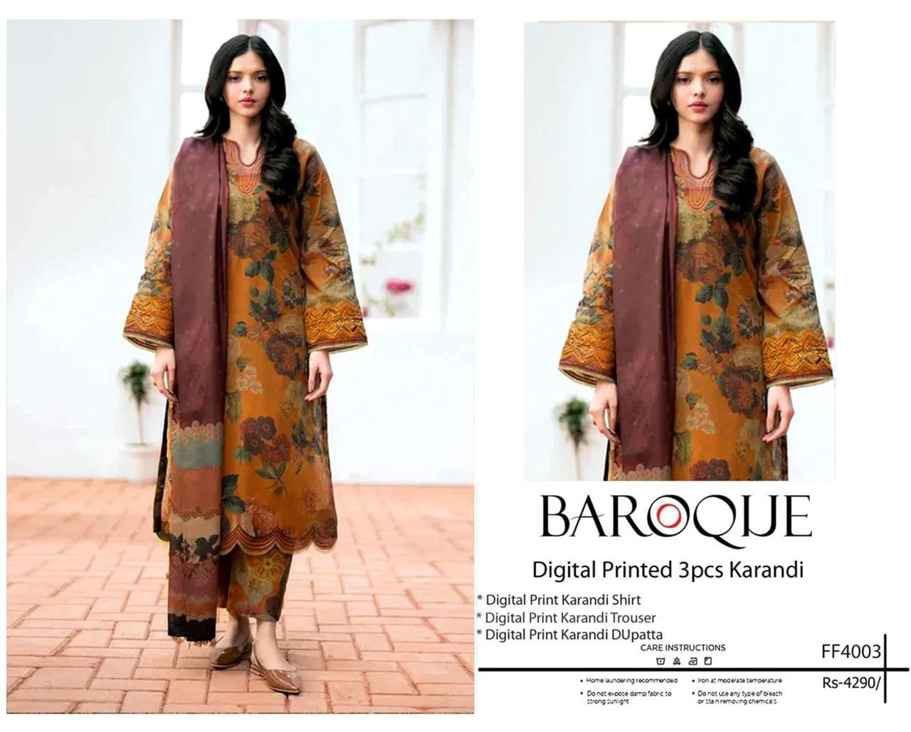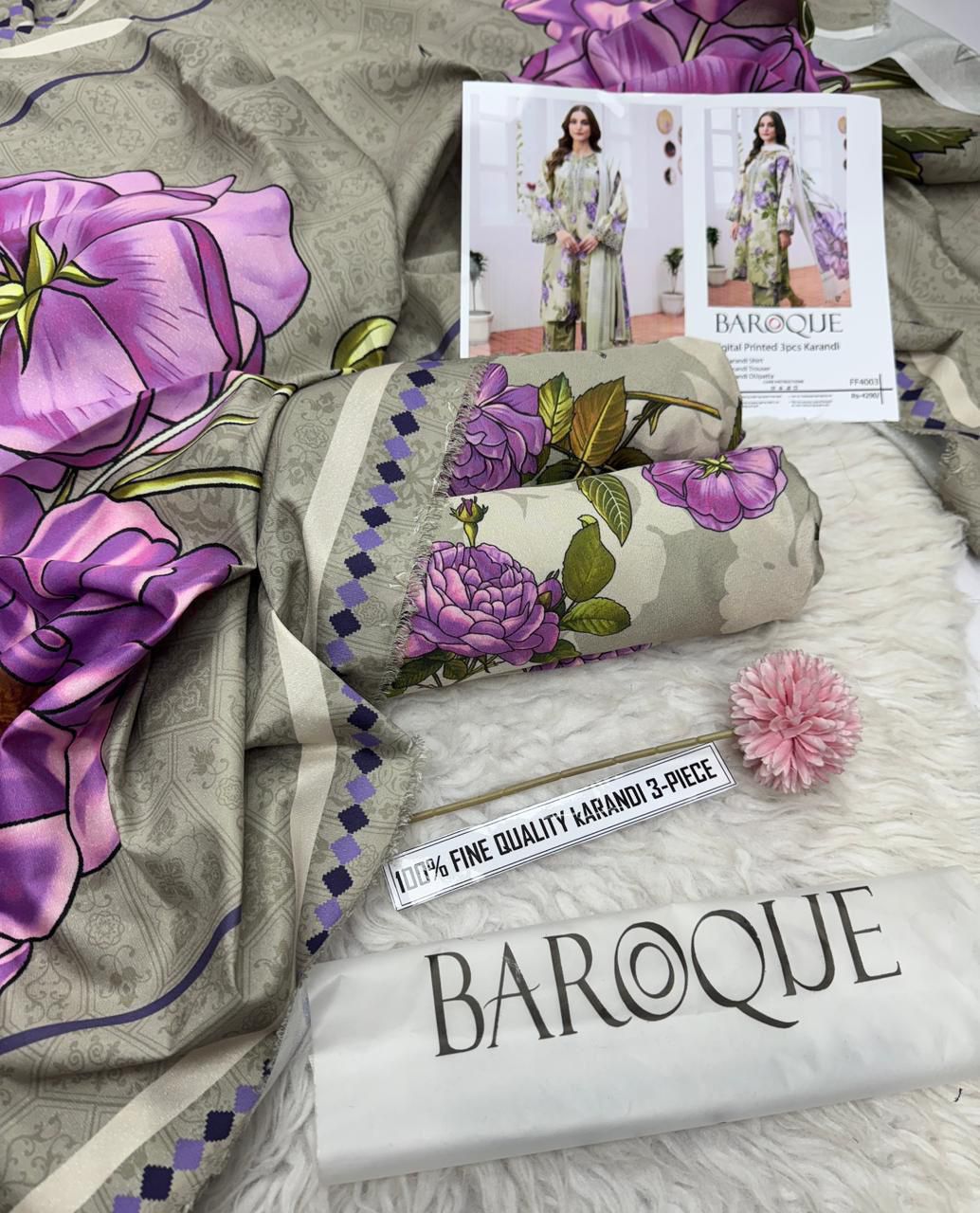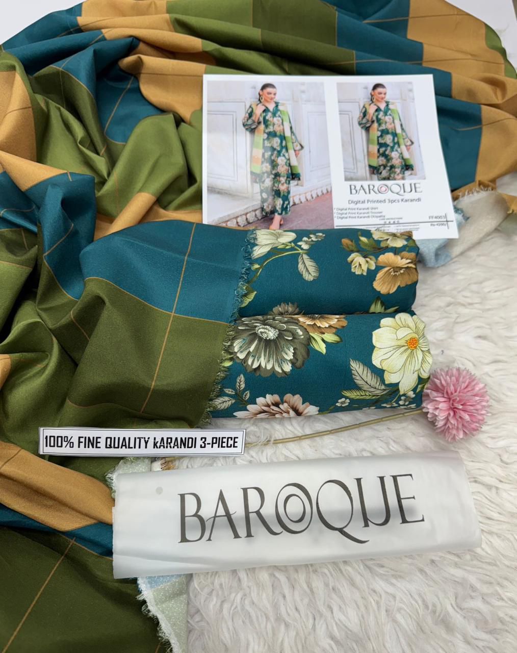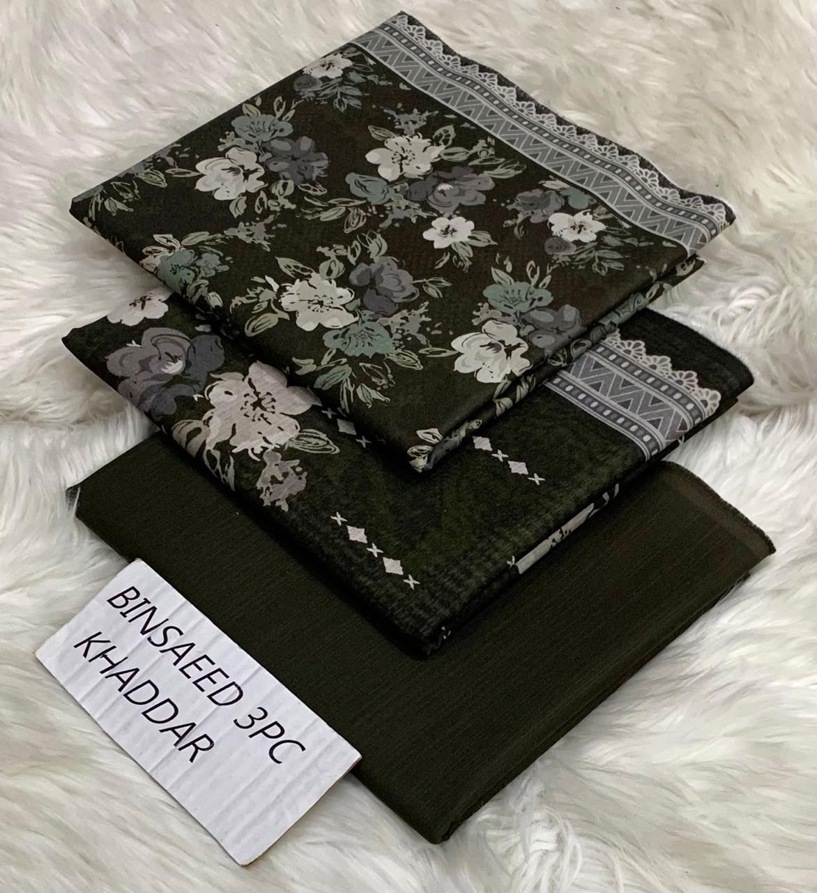 Ladies winter collection printed Karandi (Dupatta, shirt, trouser, 3Pcs)