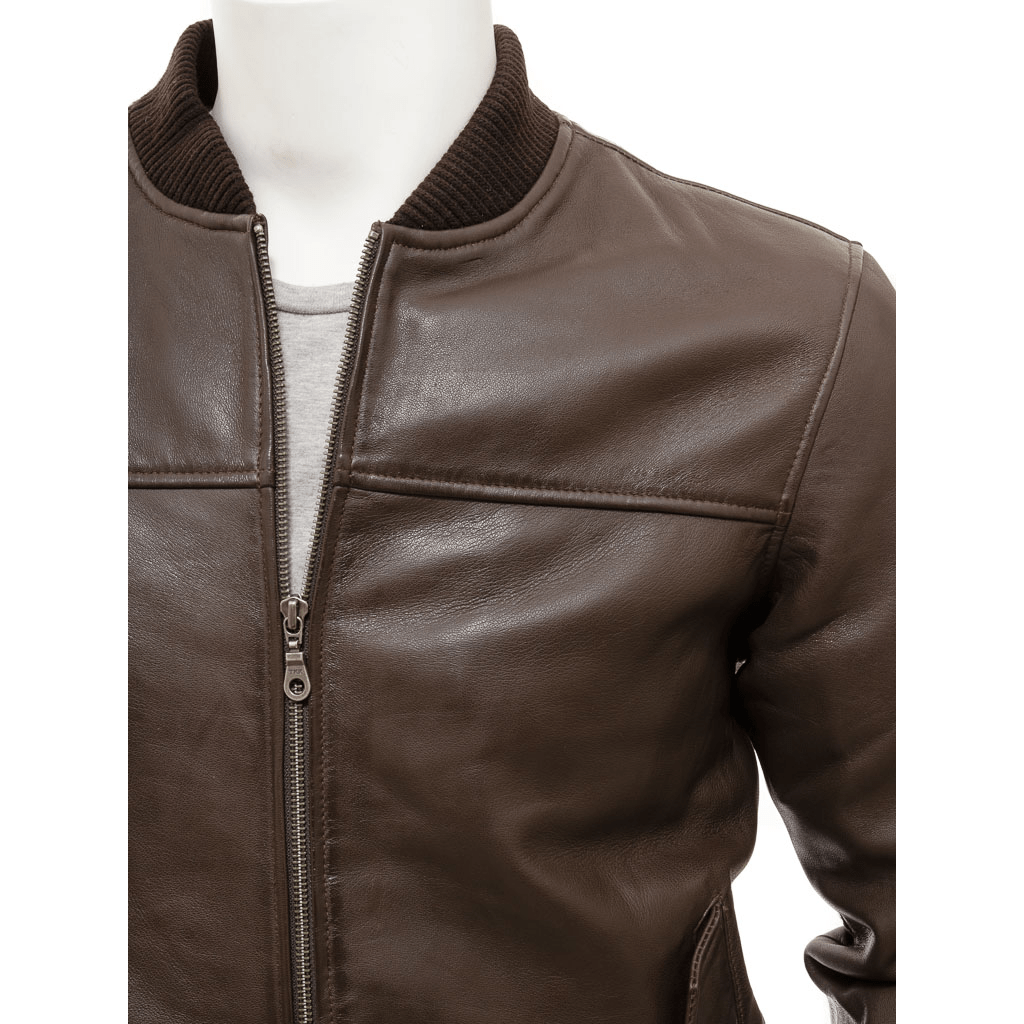 MEN BROWN LEATHER BOMBER JACKET BROWNVILLE