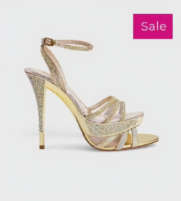 Stylish and elegant high-heeled shoe, intended for formal or special occasions. Its clear stones or rhinestones added a touch of glamour, the gold finish gives the shoe a sophisticated look with softness feet.